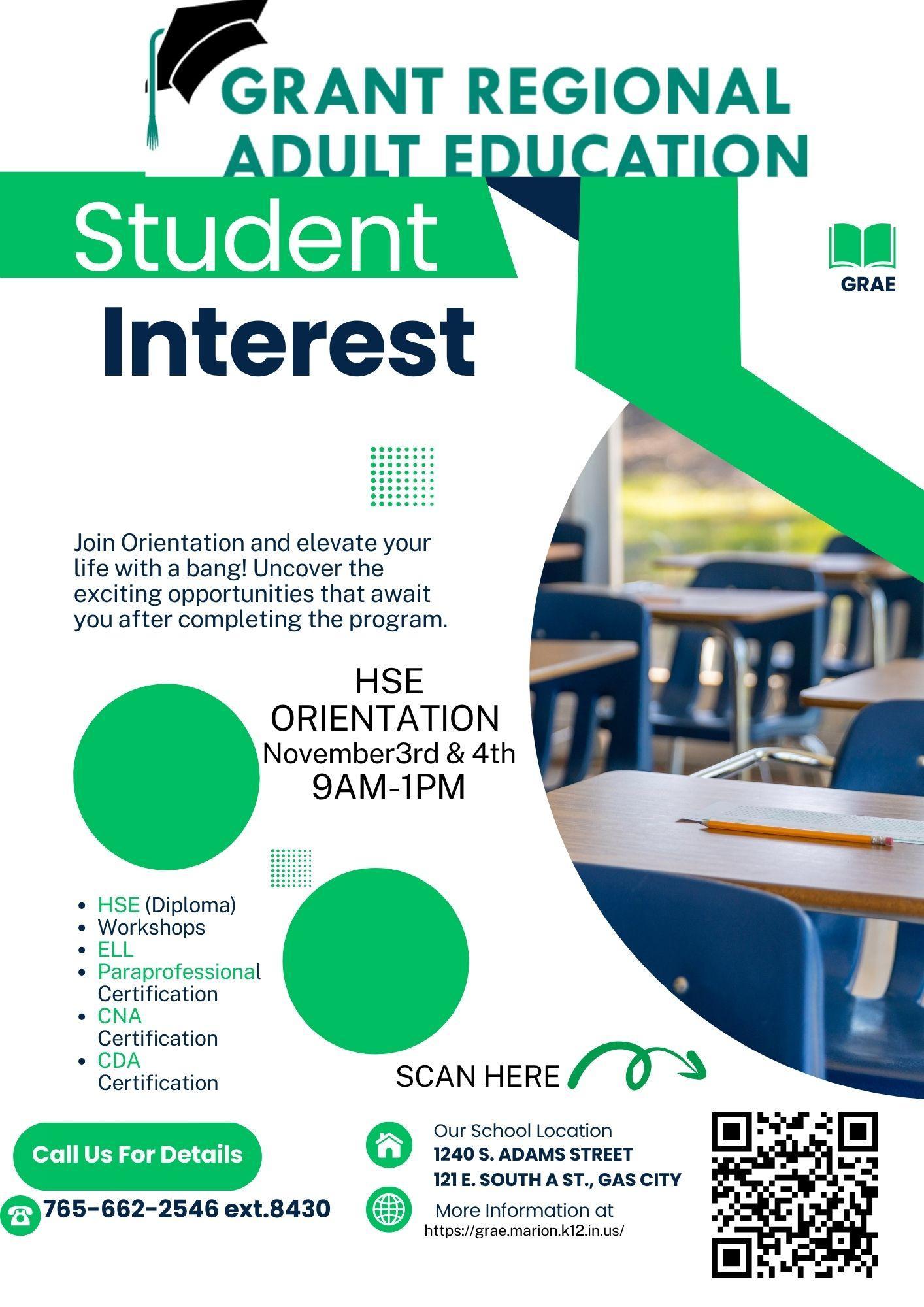 Our next orientation is coming up at Grant Regional Adult Education Center!